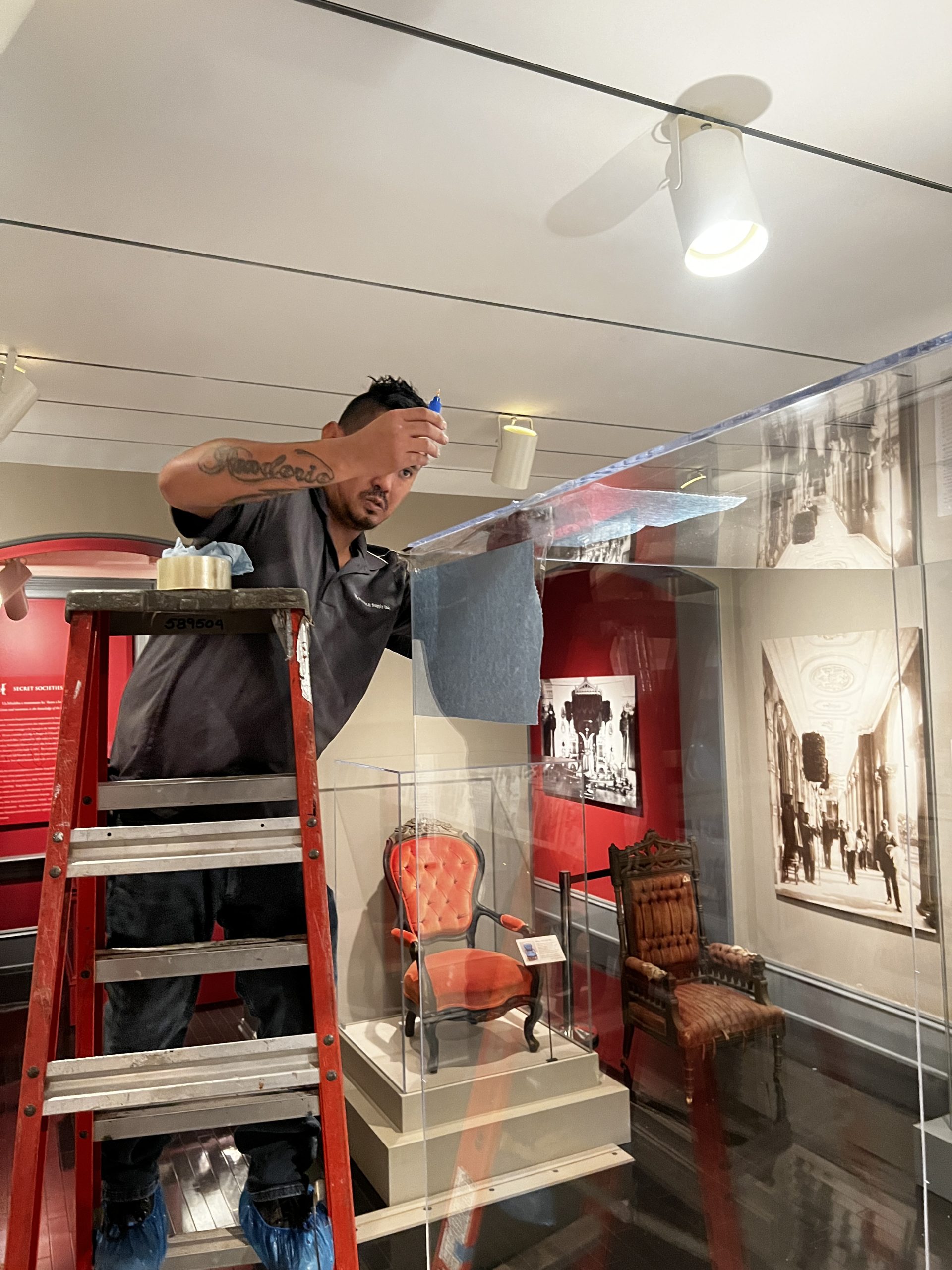These photos document on-site maintenance performed on existing acrylic display cases originally fabricated over 20 years ago. After years of service, normal wear and environmental conditions led to separation at select joints in several basement display cases.