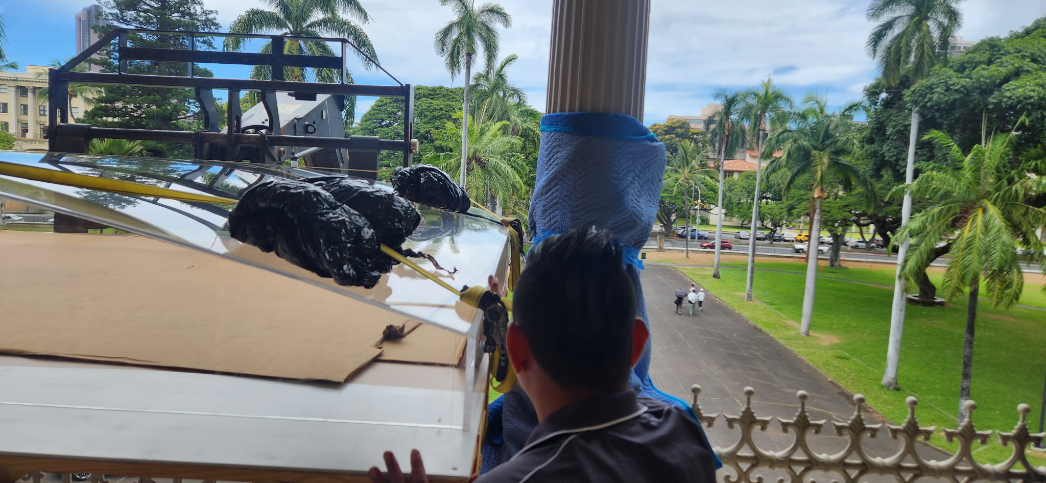 The display case was manufactured entirely in-house, including fabrication, assembly, polishing, and finishing. Once complete, the case was wrapped, transported, and delivered to ʻIolani Palace for installation.