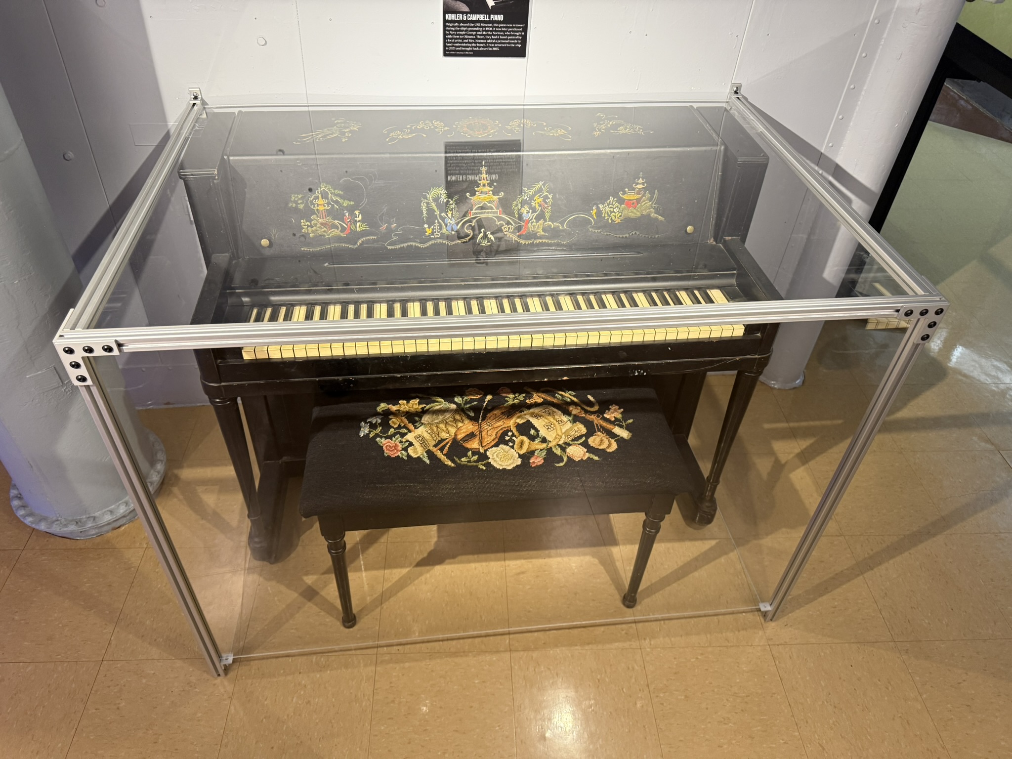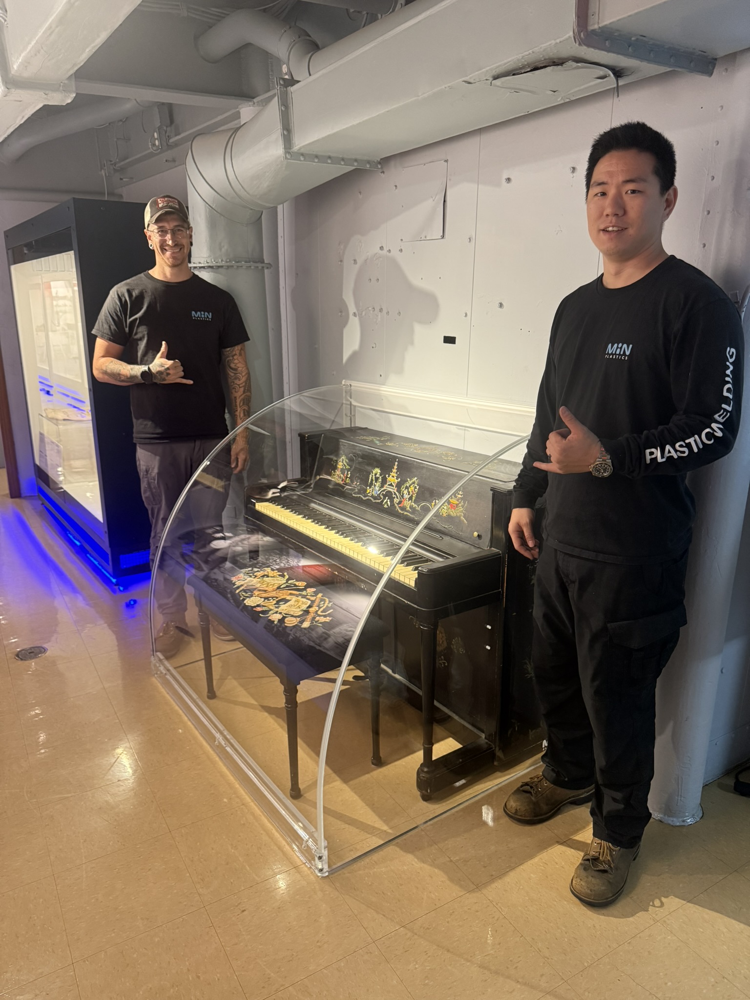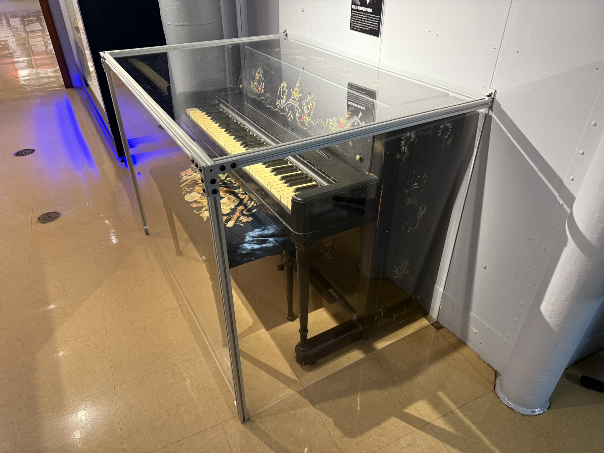 The USS Battleship Missouri required an upgraded display case for a historic piano previously housed in a system built from aluminum extrusions and bolted acrylic panels. While functional, the existing case created visual obstructions and presented potential safety and operational concerns, including the risk of the top panel collapsing if weight were placed on it.