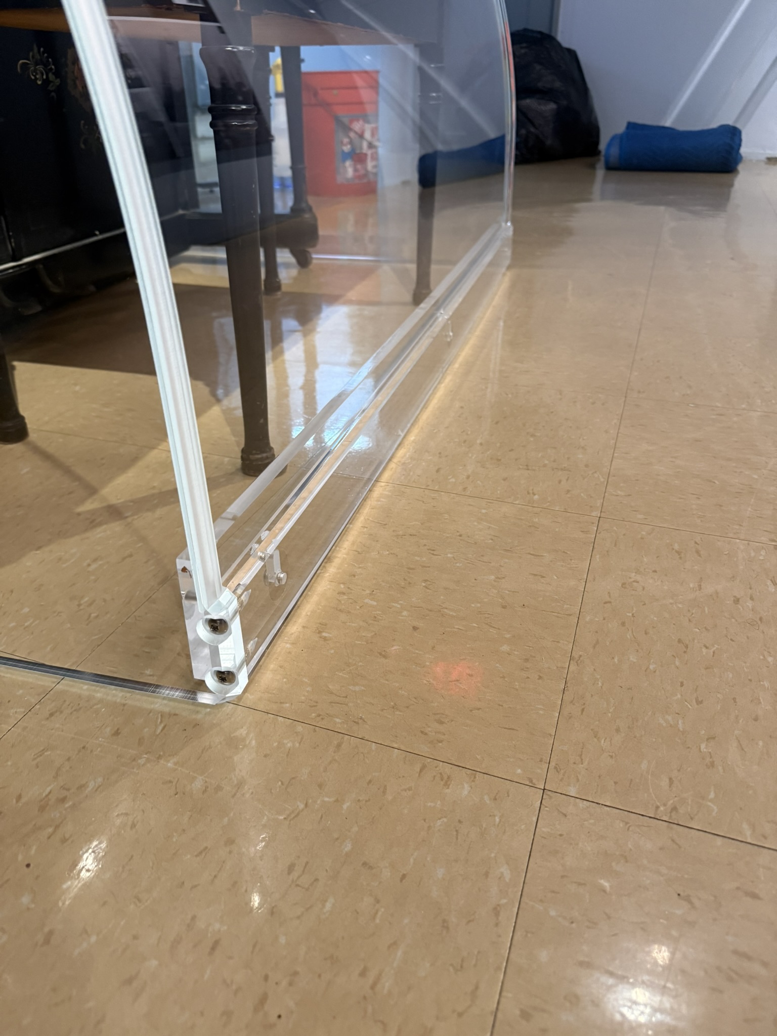 A key constraint was access: all components needed to fit through a 2′ × 4′ opening, requiring the case to be modular and assembled on site. The curved acrylic panels were precision-cut, pre-polished, and designed to sit within a track system, allowing the case to be securely bolted together quickly during installation.