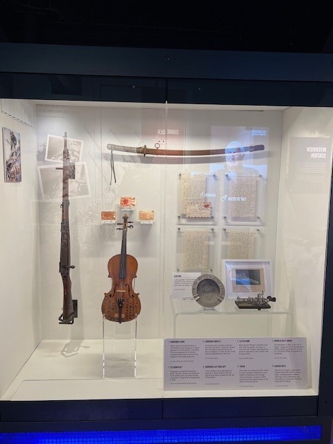 The USS Battleship Missouri was preparing to open a new exhibit, “Pathway to Peace,” featuring a collection of personal wartime items including a violin, clothing, books, and other historical objects. The exhibit required custom display solutions that would secure and present delicate items without pinning, puncturing, or damaging any fabrics or materials.