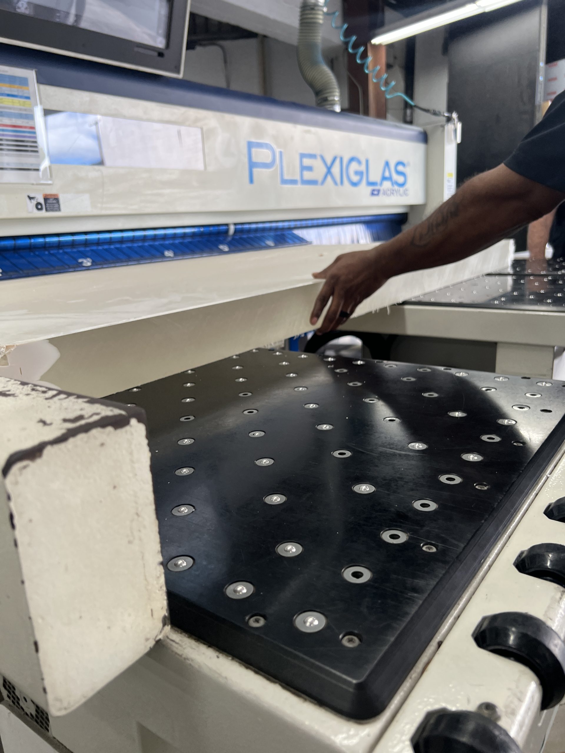 Crisp cutting, polished acrylic edges, and precise engraving for signage, branding, displays, and detailed components.