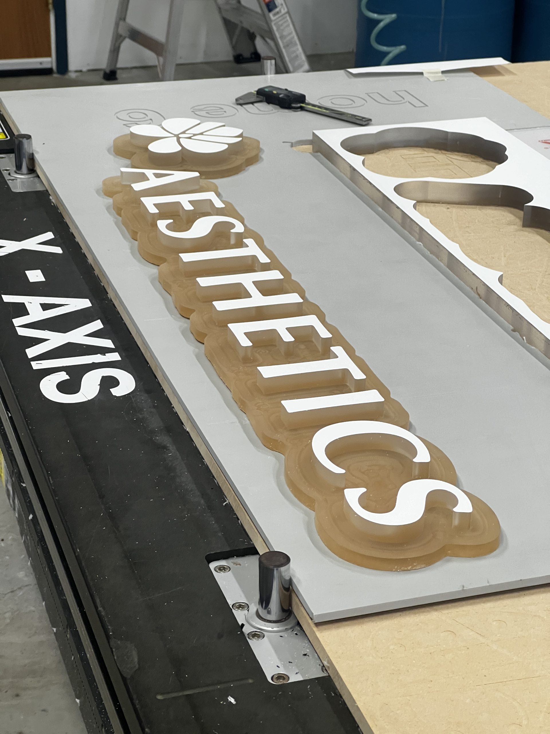 Common applications include: cut acrylic parts, wayfinding, donor recognition, branded elements, display components, and labels.